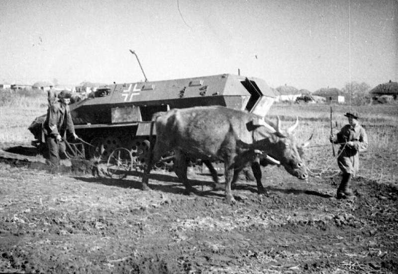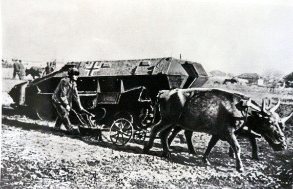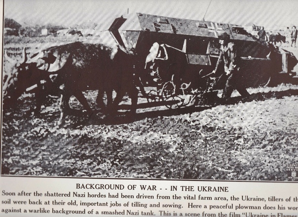 Подпись под фото: "Первая пахота на освобожденной Ворошиловградской земле, 1943 год."