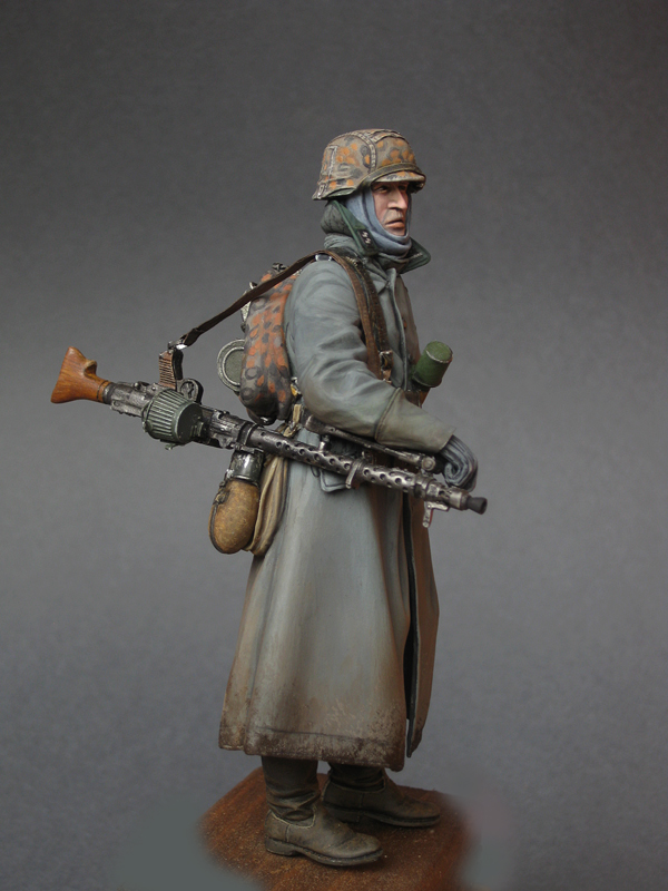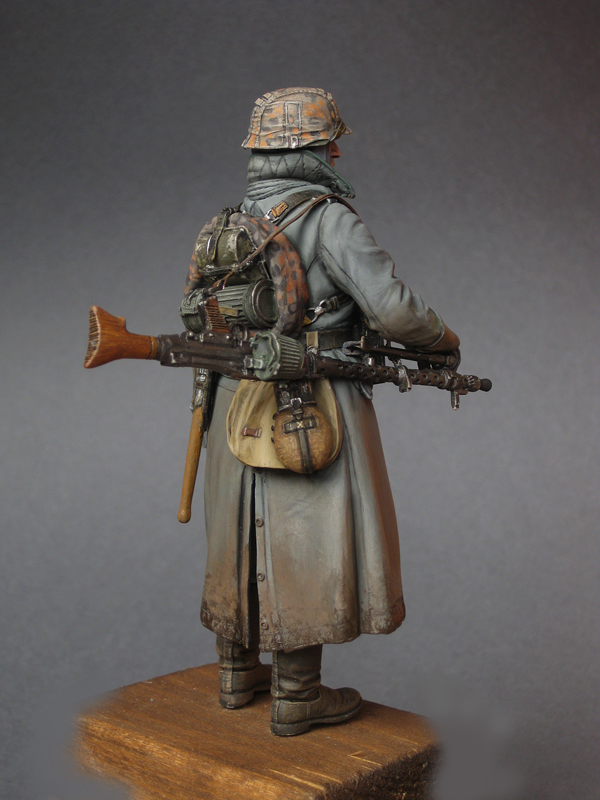 Первый номер готов полностью - обзавёлся пулемётом и испачкался в русской грязи (осталось припачкать сапоги, когда будет установлен на основание). Прям сердце кровью обливалось, когда шинель пачкал. Жалко...