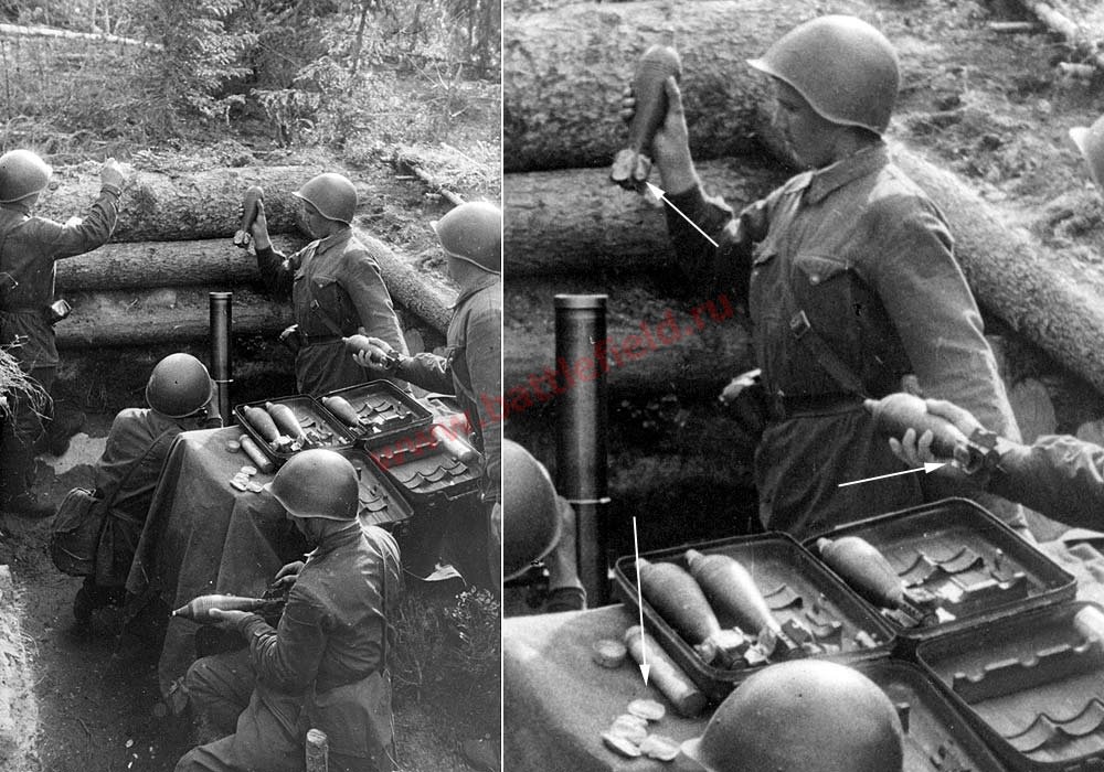 Кстати, если кто не понял, то товарищ с зарядным лотком снаряжает мины дополнительными зарядами, см. фото.