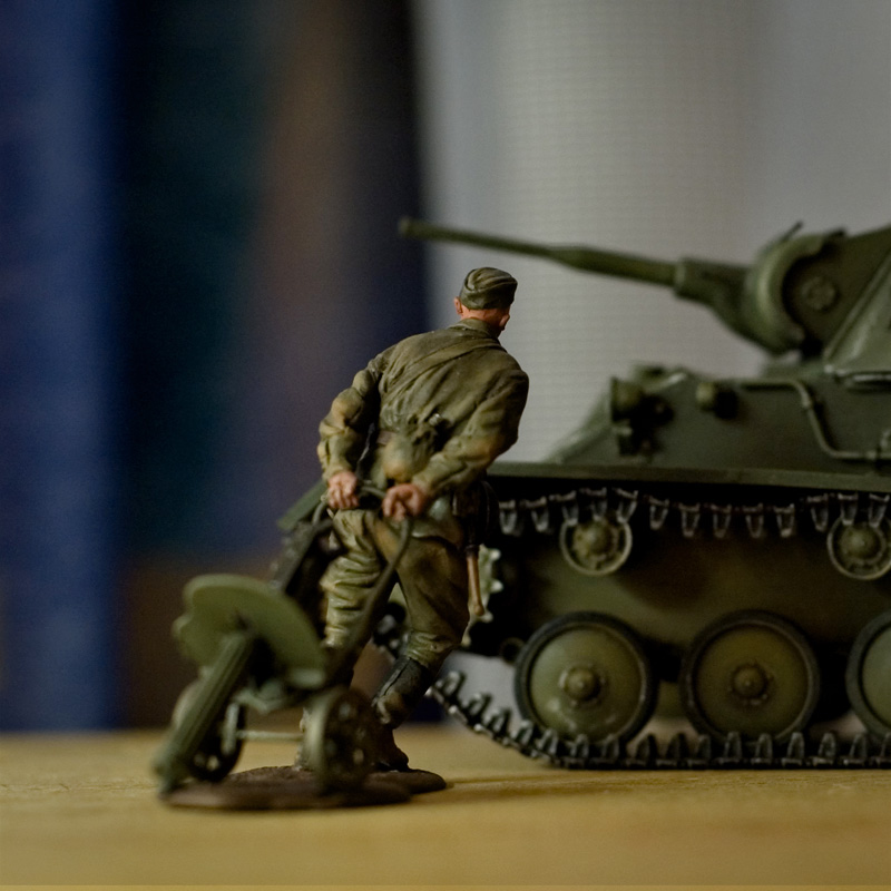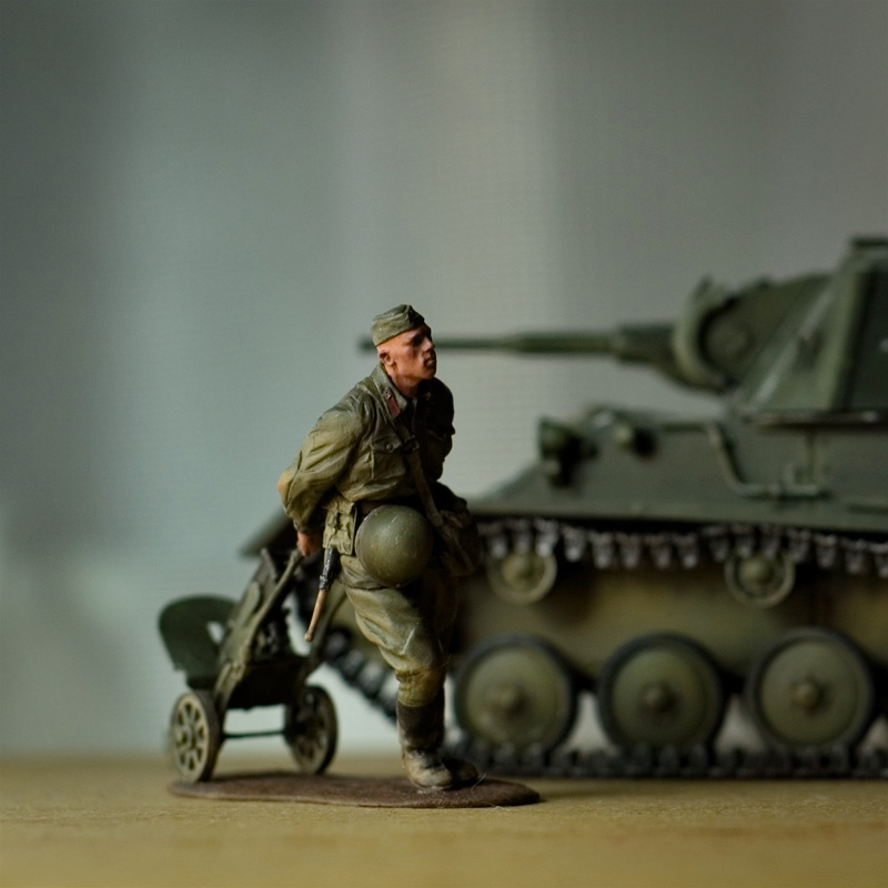 Вот, вторая фигурка после перерыва в моделизме. На заднем плане Т-70, планирую с ним первую диораму.