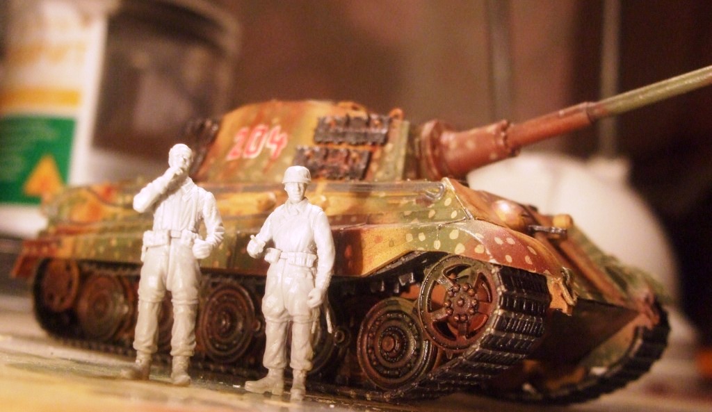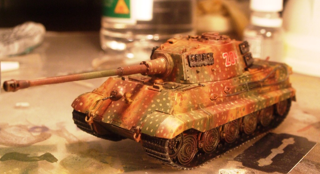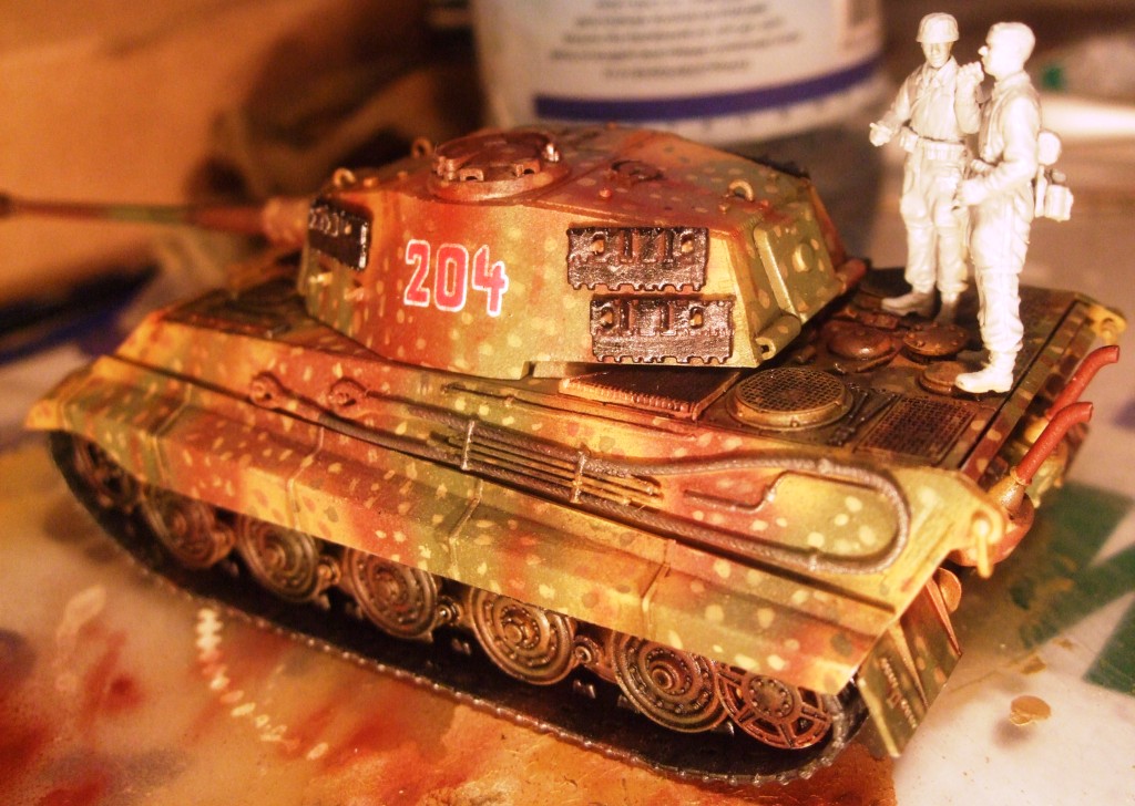 дрэгоновский kingtiger в масштабе 1/72 с б/н 204 из 2 роты 501 ттб сс,брошенный экипажем во время арденнского наступления в конце декабря 1944+парашютисты из того же набора.Делается это под диораму.