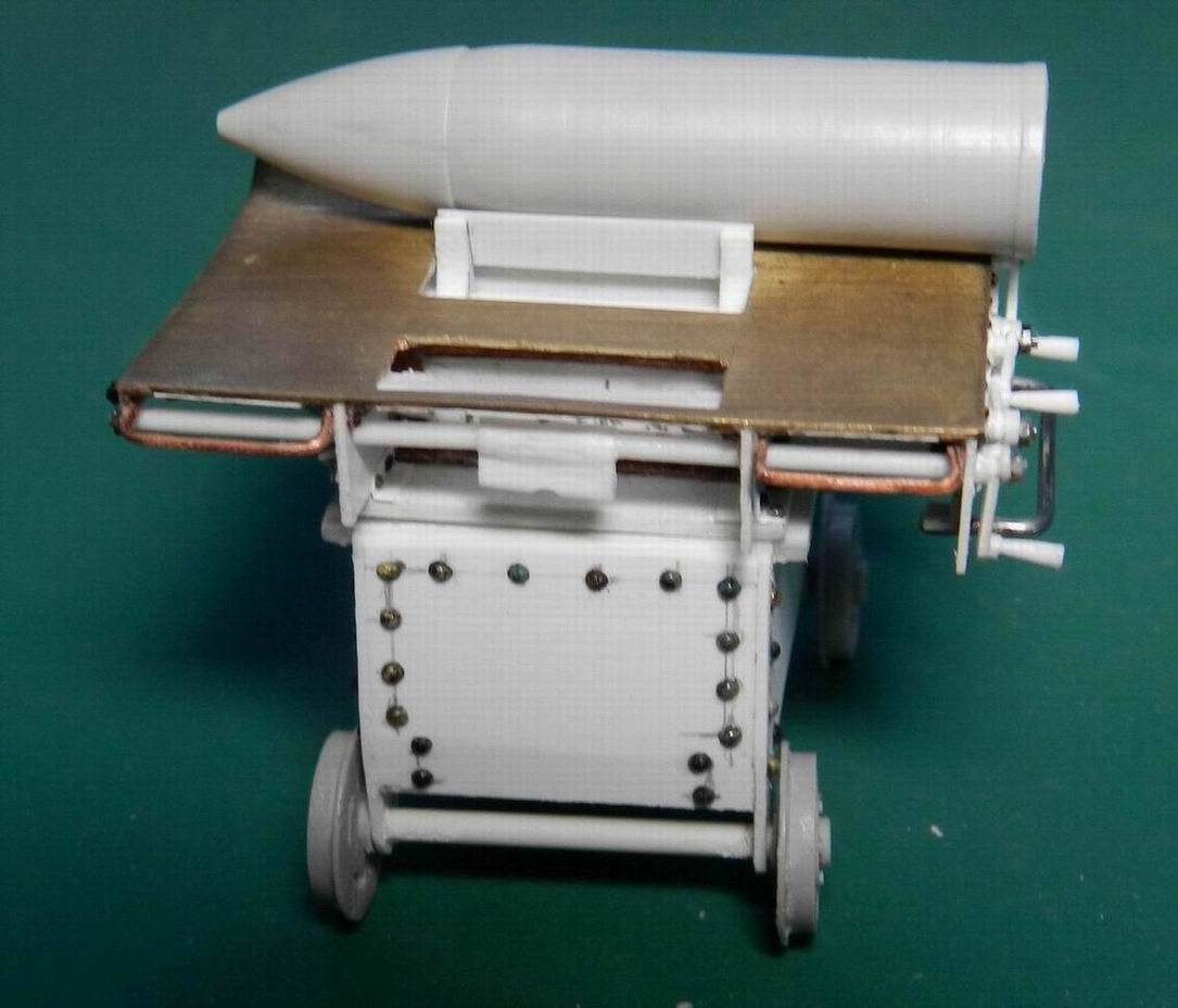 Далее изготовил тележку для подвозки снарядов. Чертежи, колёса и снаряды мне любезно предоставил Дмитрий Гуреев (dpl) из Питера. Мне осталось только собрать. Стол на тележке поворотный.