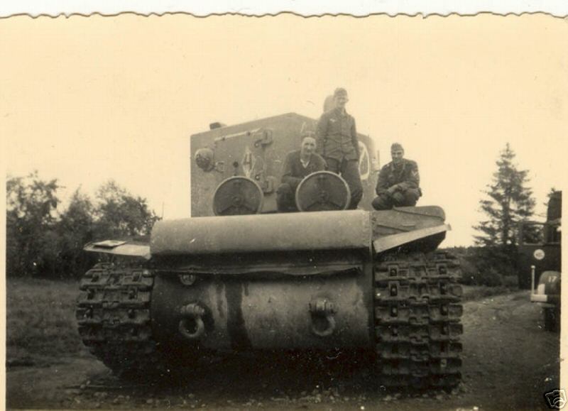 Единственное советское обозначение которое было на одном КВ-2 - это маленький желтый (?) ромбик с черной цифрой 4 сзади башни.