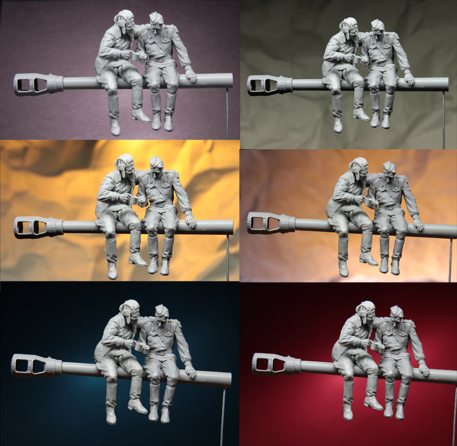 Танкиста с флагом я делал по фотографии, но самое интересное это была роспись. Интересно было обыграть большие монотонные площади спины ватника, флага, ящика. Недавно купил и прочитал очень хорошую иллюстрированную книгу "Импрессионизм" http://www.ozon.ru/context/detail/id/4630852/ Так вот, живопись импрессионистов и их работа с цветом очень впечатлили меня, в частности "цветовые пятна" живописи Сезанна. Не хочу сказать что я теперь такой из себя "импрессионист от моделизма", но теперь я многое переосмыслил в росписи и стараюсь, где считаю уместным, применить некоторые их приемы и более свободно работать с красками.