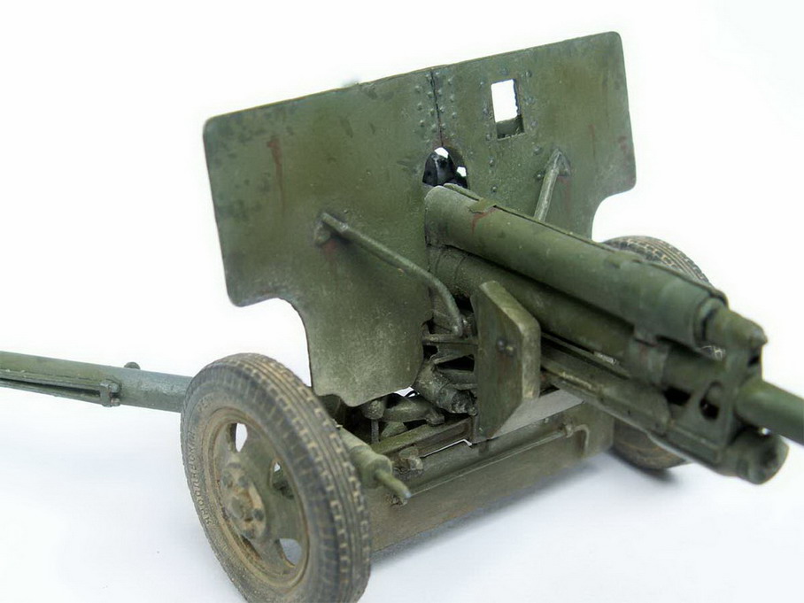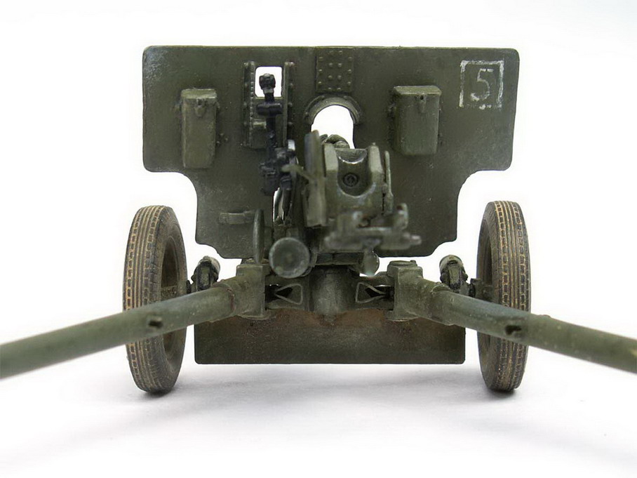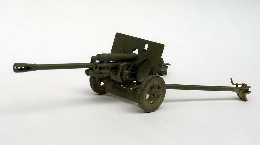 Закончил покраску ЗИС-3. Собрано орудие было 2 года назад, а вот до покраски руки не доходили. Прошедшие 3 выходных выдались относительно свободными вот и удалось закончить.
