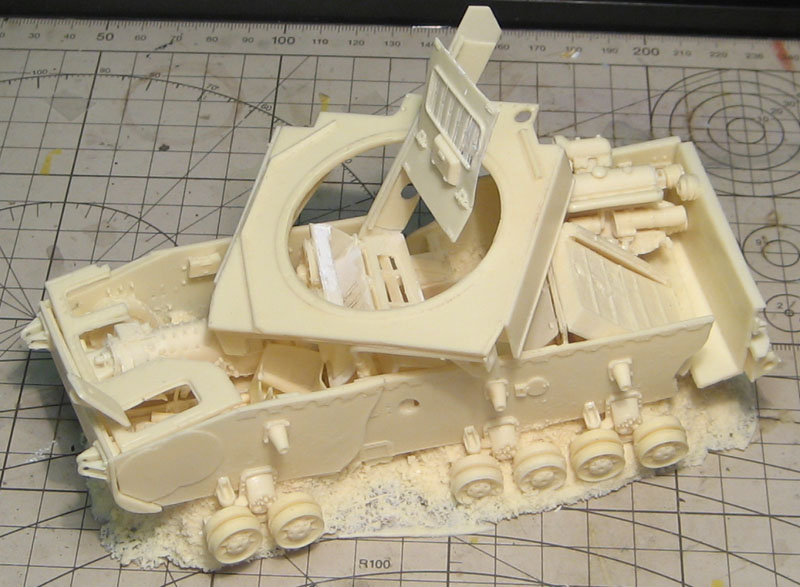 - Если модель не требует работы над интерьером либо покраски в процессе сборки - задуваю серой грунтовкой и на стеклянную витрину. В соседстве с окрашенными фигурами это в принципе смотрится вполне приемлемо.