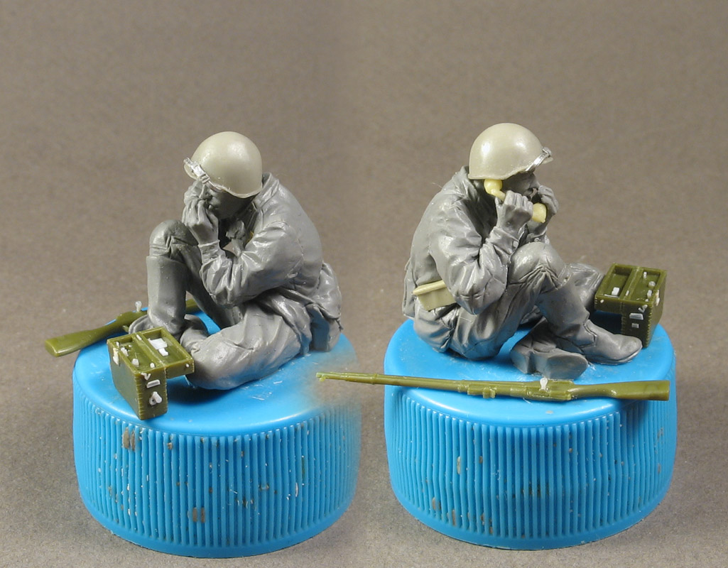 Блин сегодня, после получения фигурок серии "под огнём" со мной случился второй ( после "Остина Русского" от ARMO") облом. Таких ужасных фигур я ещё не видел. На мой взгляд, единственная более-менее получившаяся фигура, это пулемётчик....Качество ниже всякой критики, причём гораздо хуже, чем у прежних фигур. Каски практически невозможно отделить, не повредив отбортовку, раньше, когда шпенёк на куполе был, такого не было. Винтовки все в облое, с раковинами. Отделение фигур от массивного основания затруднительно, в труднодоступных местах "растут пеньки", ботинки утоплены в основания, линия смещения формы весьма заметна, опять же раковины везде... Заменить ботинки, сросшиеся меж собой, нельзя, ни одна обувь не подходит - всё недоразмерено так, что в "Танковской" каске фигура походит на гриб. При дальнейшем рассмотрении две фигуры собирать вообще отпало желание.В общем, дай Бог, чтобы из шести фигур хоть три собрались. Право, нельзя такие недоведённые фигуры продавать и денег жалко, всё таки не миллионер. Чёрт..