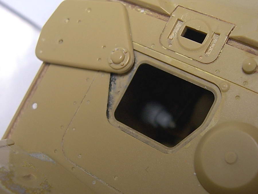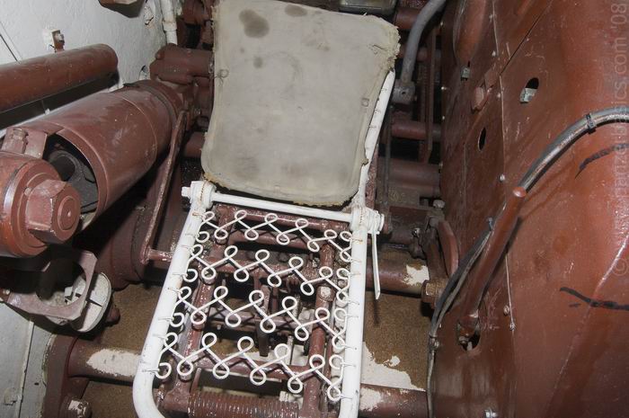 Видно будет плохо. Самыми заметными элементами будут крепеж люка и остов сидения. Поэтому деталь и не проработана на предмет мелочей. К корпусу она не приклеена, а просто приложена. Т.к. сначала пойдут участки торсионов и часть настила.