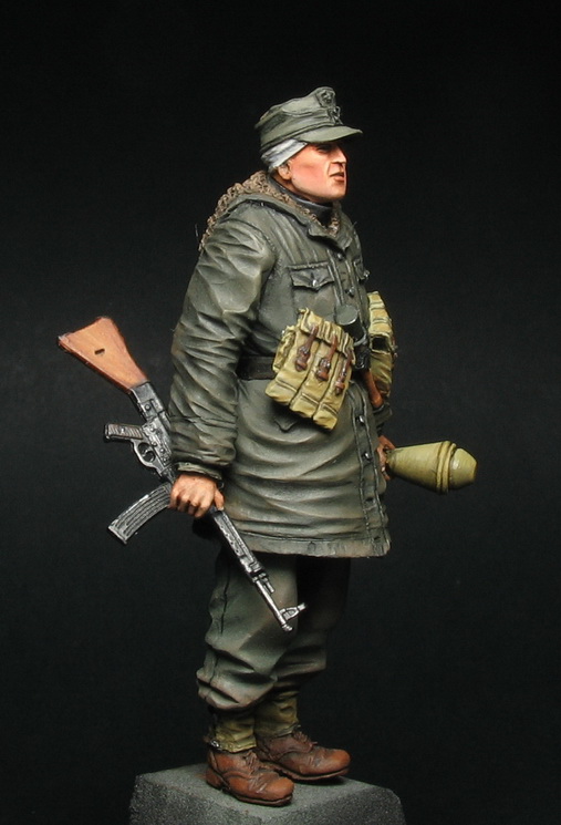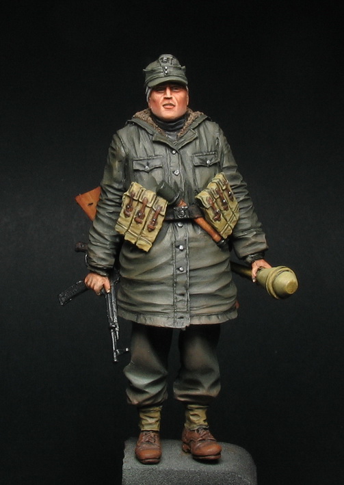 Фильтром добавил в цвет парки зеленого. В запасе остались деколи от Драгон на фаустпатрон, имхо такие мелочи оживляют миниатюру.