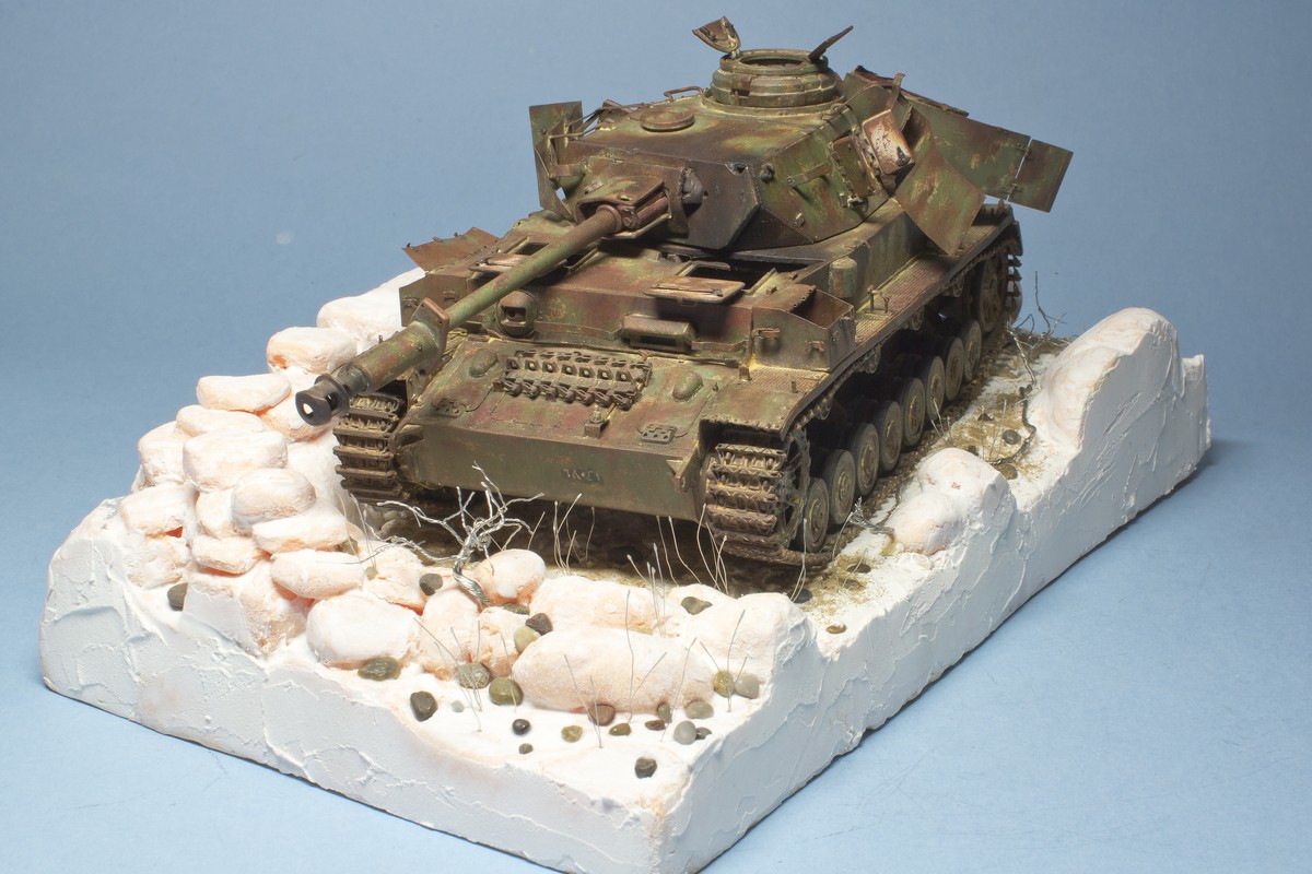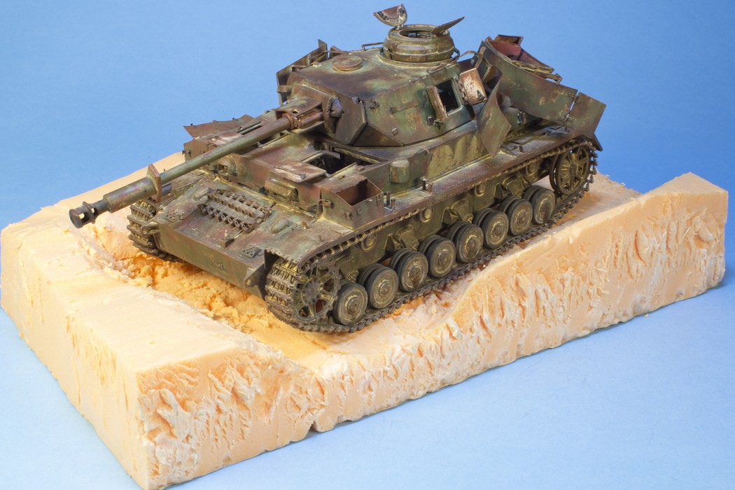 Доброй ночи,Андрей! Молодец, что начал делать основание. С интересом буду следить за продолжением работы. Пока работа с основанием не зашла слишком далеко, попробую дать пару советов. Во-первых, нужно определиться с лицевой стороной диорамы - это та точка, с которой танк смотрится интереснее всего и с этой стороны будет название работы. Соответственно и основание под раму нужно обрезать так, чтобы углы не смотрели на зрителя(я так понимаю рама будет не круглая, а прямоугольная