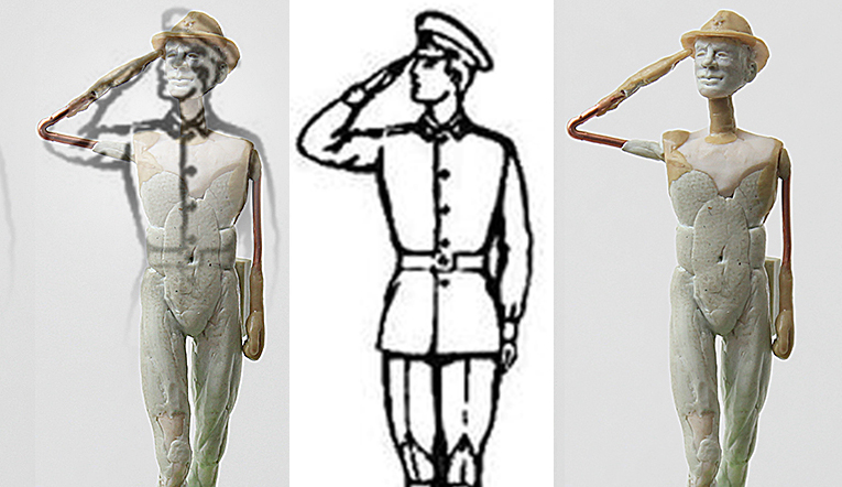 . Повторюсь - изначально курсант должен был просто идти медленным темпом (пост #62). К моменту подгиба рук для приветствия ноги скелета уже засохли. Поправлять не стал, а жаль.