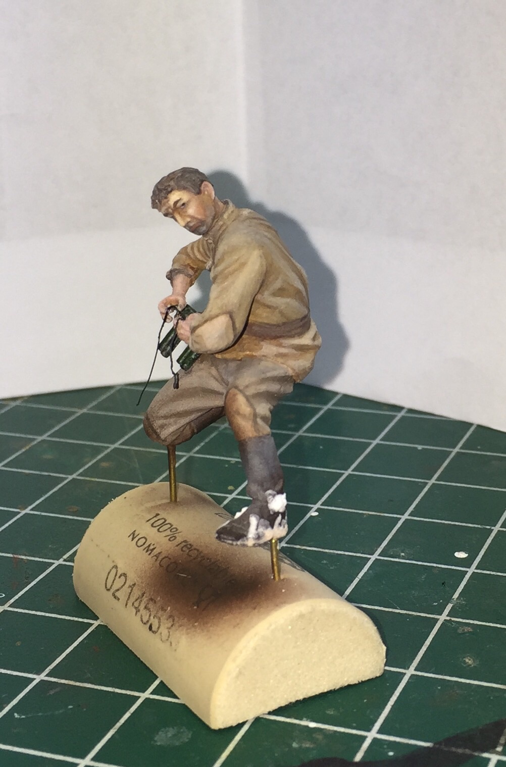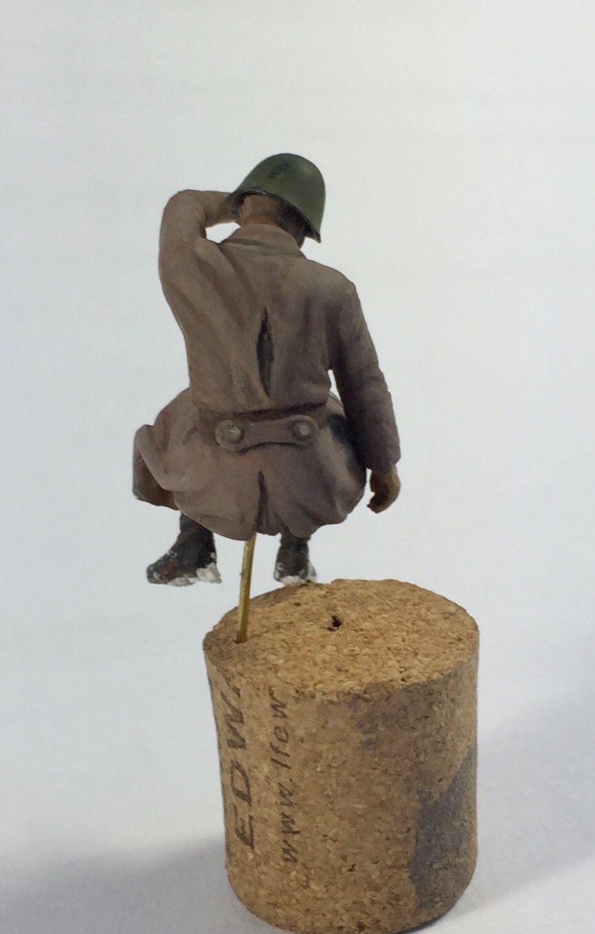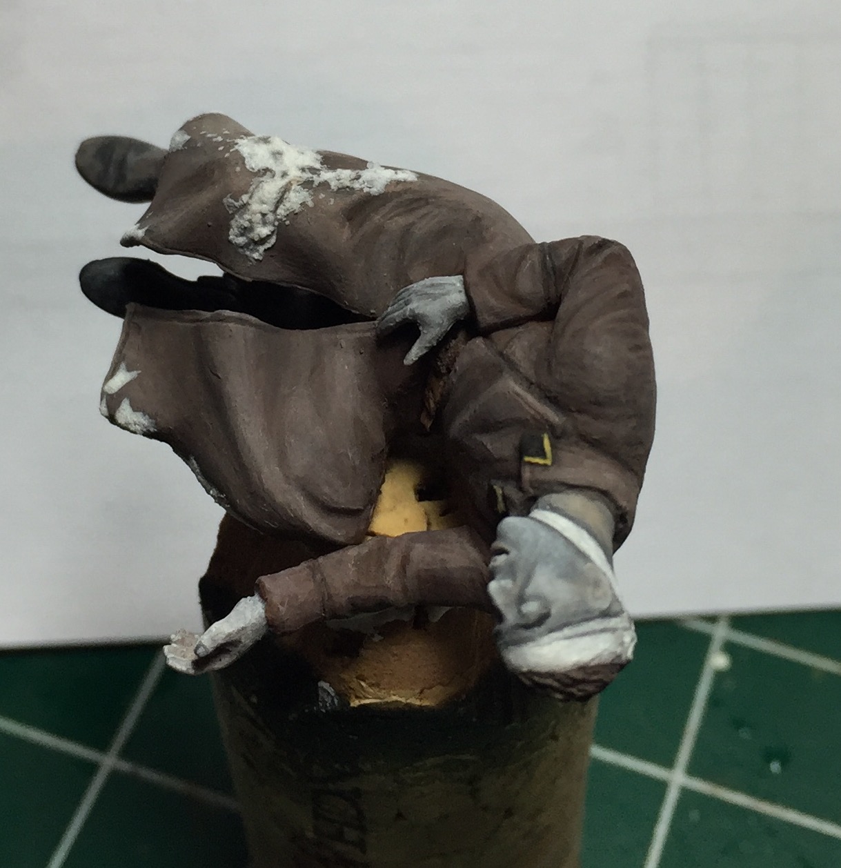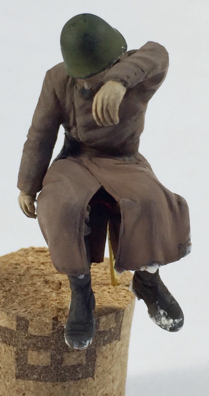 Очень долго не принимался за этого бойца.. Да и за само хобби в целом. Итак, убитый подносчик снарядов. Не самая приятная фигурка для росписи, но ничего не поделаешь- по задумке у меня будет два убитых на диораме- как и на картине. Может показаться что цвет лица слишком синий, но сцена же на снегу, прикинул, что так может быть от мороза..