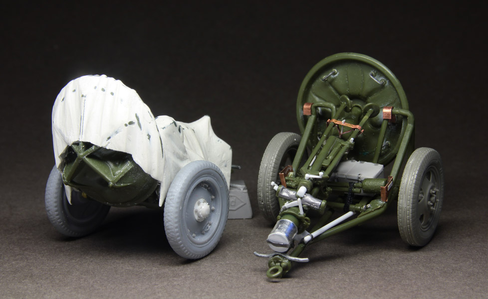 Задачи убиться насмерть при доводке минометов не было, всё-таки они только фон для фигурок, но доработок сделал немало. Колеса Мастерклуб и доработанные от 76 мм полковушки Алангера. Как частенько бывает в таких случаях сделал много дурной работы скрытой под брезентом.