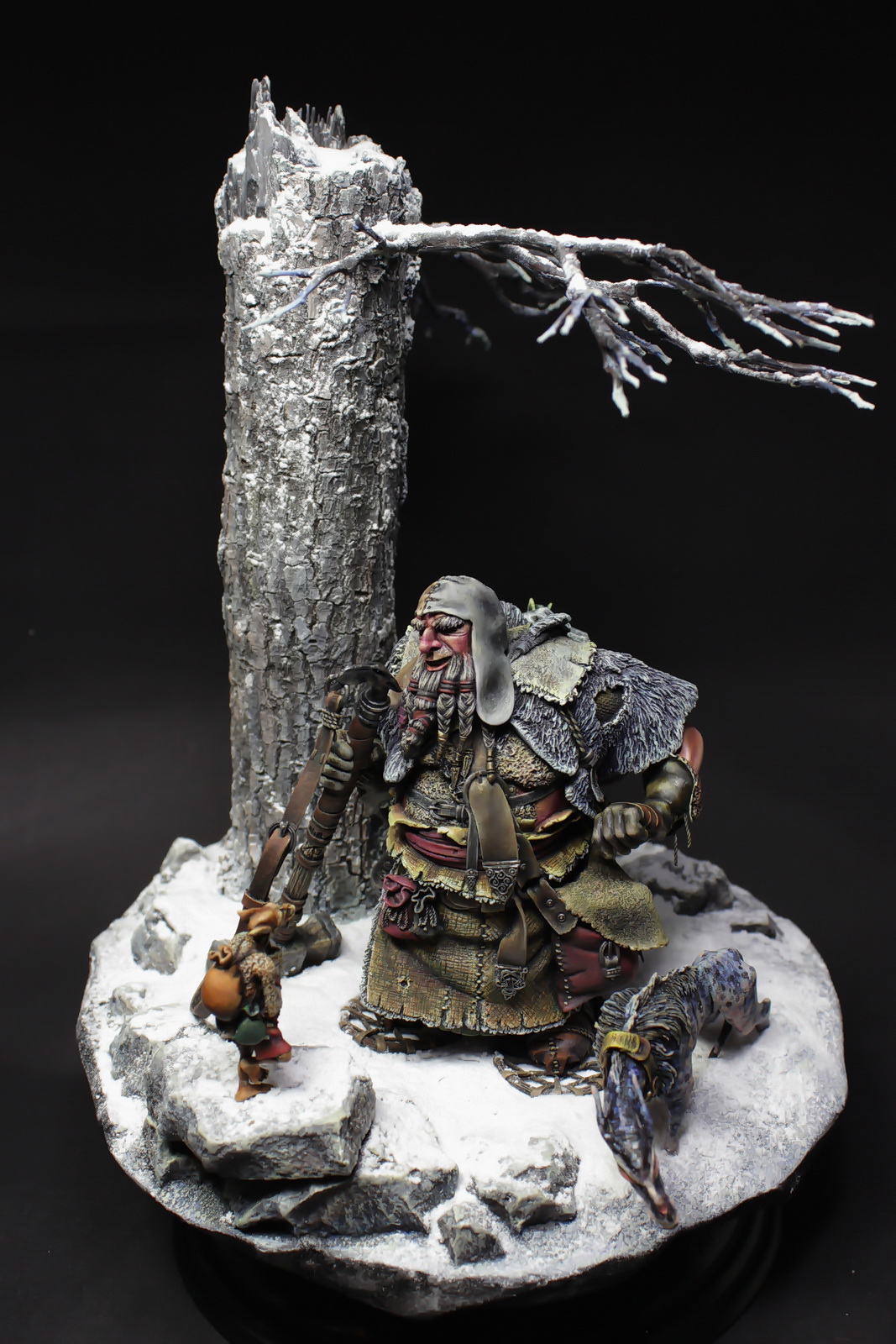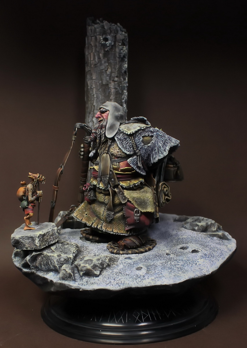 Всё здорово ,только верхняя часть фигуры немного сливается - шапка ,борода и брови ,шкура,мох на дереве .Как то много серого цвета .