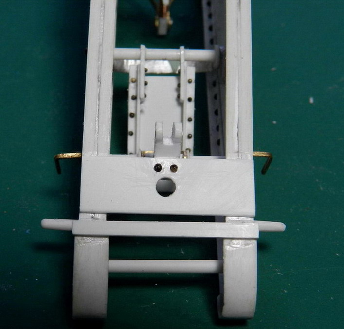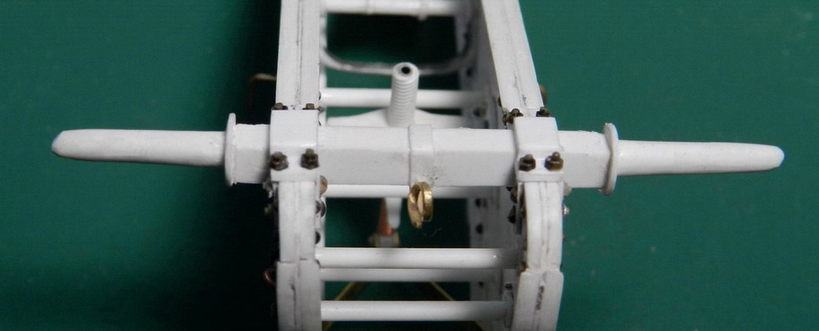 Наконец закончил модель 6 дм. весом в 190 пудов обр.1867 г.Выкладываю сразу всё что делал за прошедшее время. В лобовой части установил боевую ось с крюком для баклаги. Немного вереди от хоботовой части установил поперечную связь со шворневым отверстием и кронштейном для крепления штока компрессора. Изготовил собственно компрессор.