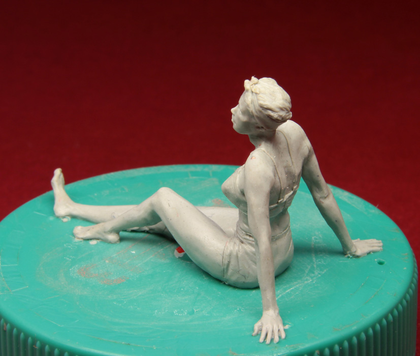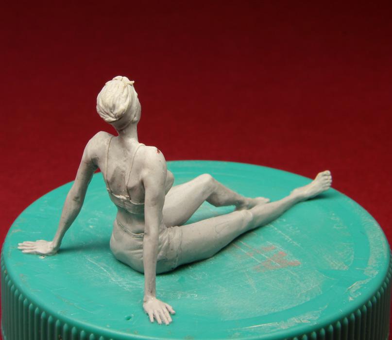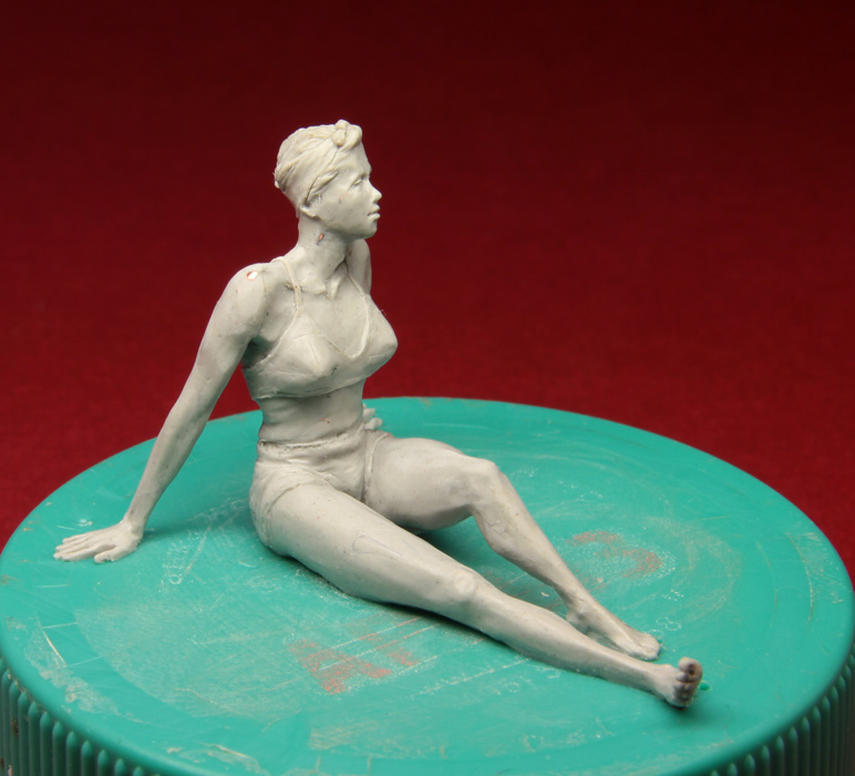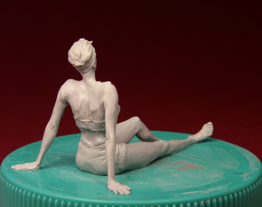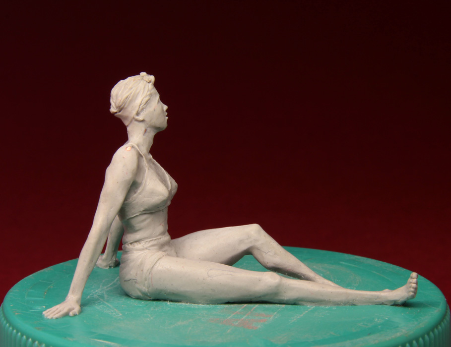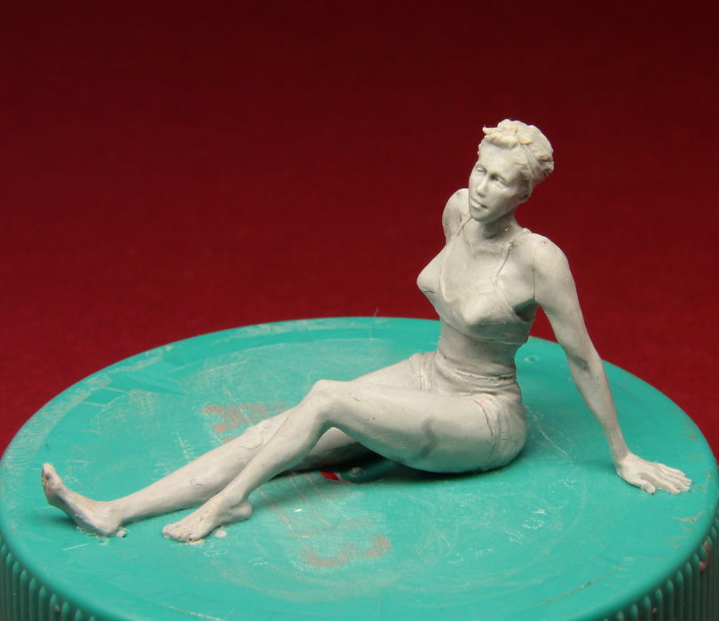 Решил дерзнуть и слепил женщину в 1/35. Самому мне далеко не всё нравится - кое-где с пропорциями напортачил, голова мелкая, отношение толшины икр к толщине бедра неправильное, ступни мелковаты, голень тонкая, но, в целом, думаю что получилось. Может так себе, но получилось. Я ожидал худшего. Но подруга раскритиковала эту женщину №1 в пух и прах.