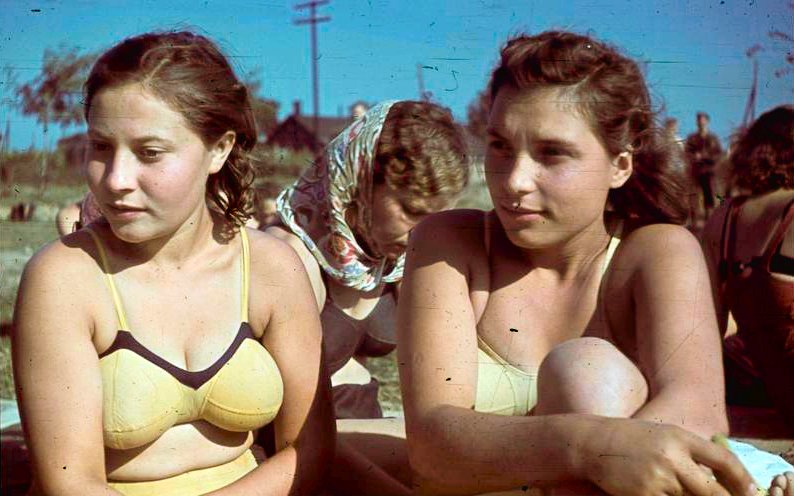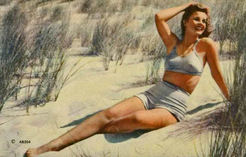 Следующая девица будет в более распространенном тогда закрытом купальнике.