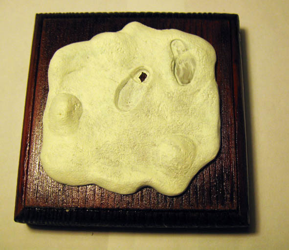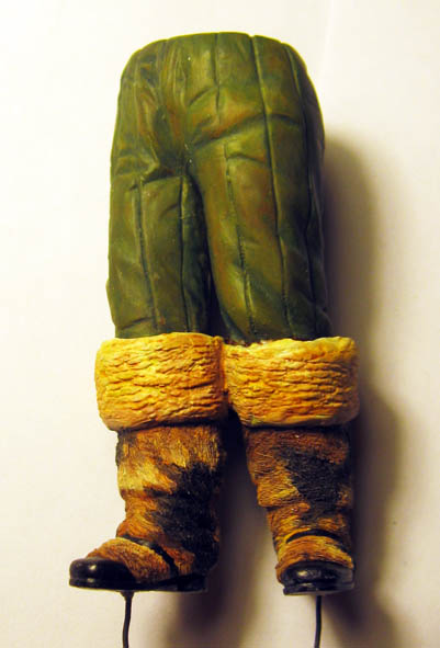 Подставку проморил и залакировал. Эпоксилином сделал площадку. Выбрал расположение ног. Всё загрунтовал акриловыми белилами.
