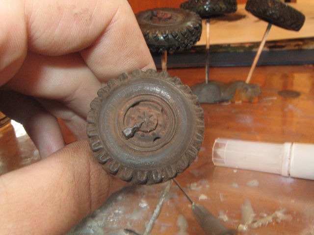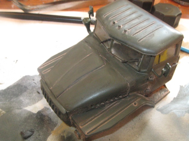 Начал с колес,сейчас их докрашу,немного пигментами запылю и выложу фото.Сильно уханьканым урал делать не буду(как кюбель