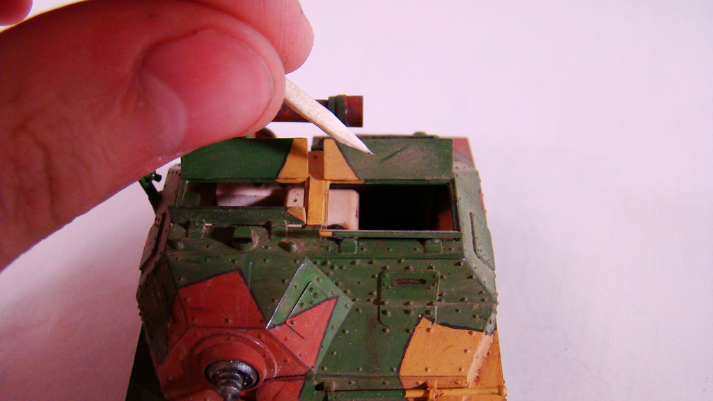 Козырек вчера добавил,фоток процесса к сожалению нет, так как "хорошие люди" разбили мне лампы освещения,поэтому все фотосессии приостановлены.На словах это было так, из все тех же плат были вырезаны три части, одна гнутая основа и два треугольника по бокам, после склеены супер клеем и немного заточены.Изготовление проходило очень сложно так как деталь не превышала 4мм сама танкетка чуть больше спичечного коробка, получилось искомое более менее на пятый раз.Окончательная пересъемка все равно будет поэтому фотки выложу в любом случае, но в какие сроки точно не скажу так как на работе сейчас завалы.