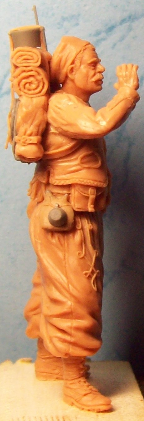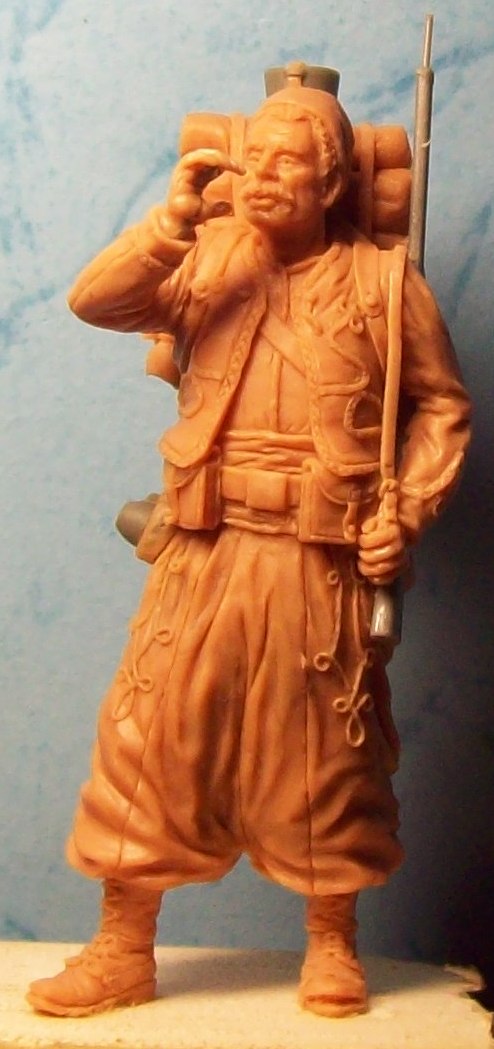 итак- зуав почти готов.осталось дать ему горн.хотел сперва использовать горны от гусар Блескина и кирасир которых лил для первого легиона-размер чуть больше требуемого оказался-буду делать сам.