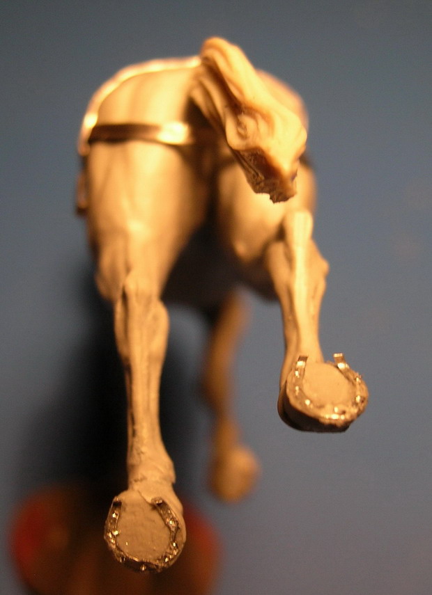 Глеб, Да уж. Переделал. И начал ковать лошадей. Подковы были нескольких номеров, но при ковке их подгоняли под копыто. Толщина подковы (в натуральном размере) 11 мм. Ширина 20-28 мм. Если следовать деталям, то на передние ноги упряжных лошадей ставили округлые подковы, на задние -элиптические.