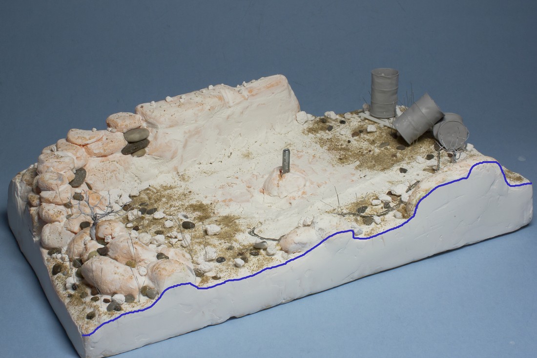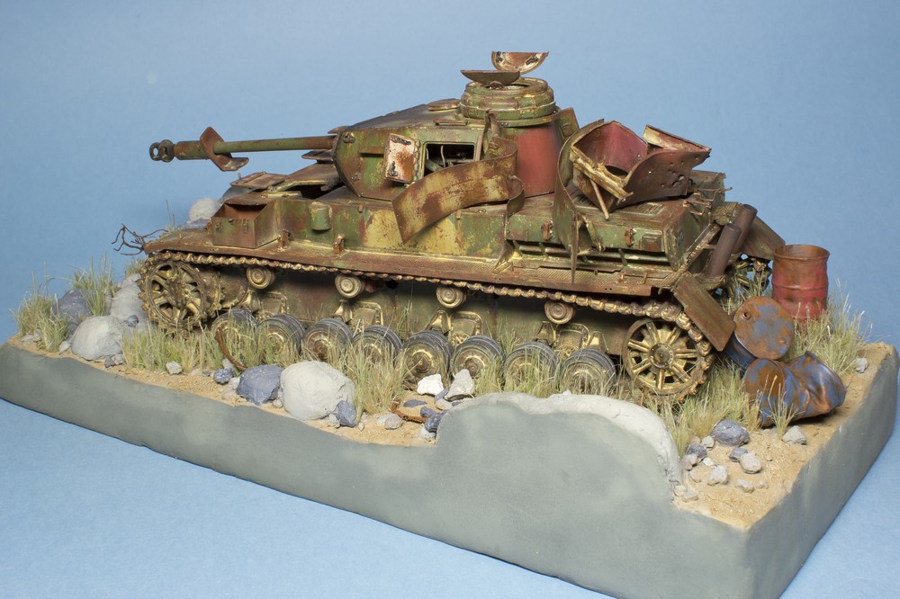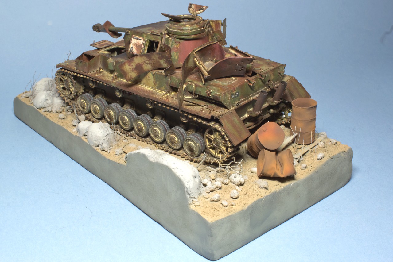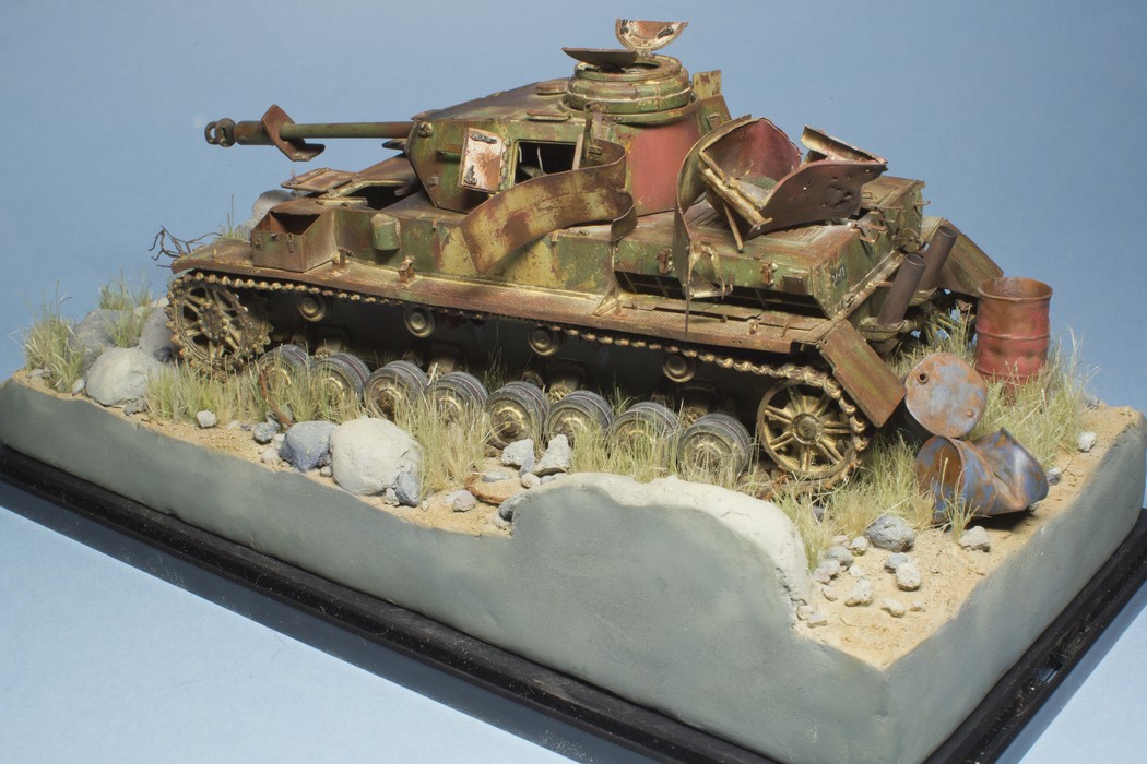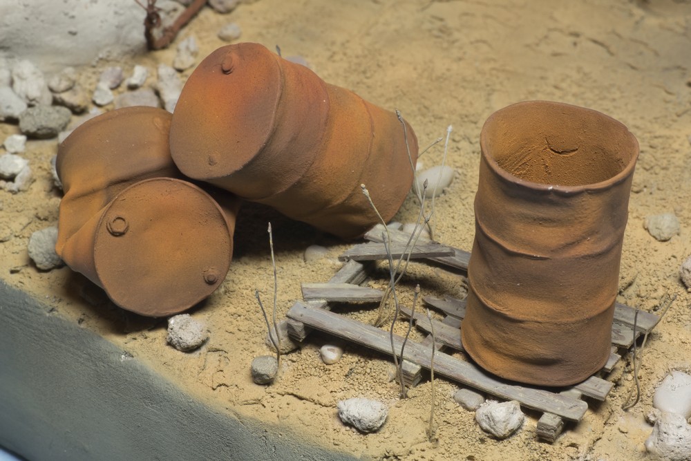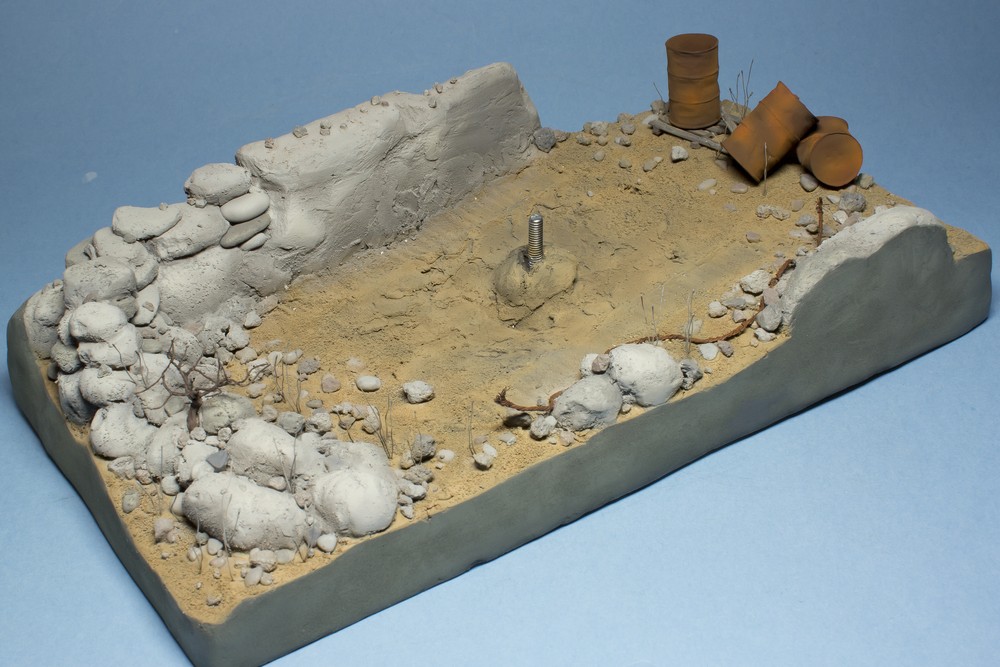Мне тоже нравится. Я так понимаю - сверху будет стоять старая ржавая бочка. Можно добавить немного осыпавшейся ржавчины на песке и на поддоне(сухой и рыхлой ).