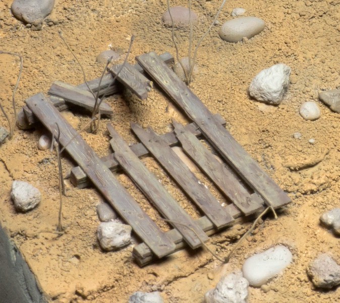 Замечу как бывший грузчик - поддон шикарный.Не скажу про серый цвет, но сейчас очень реалестичен. Только не красьте его - так поступают только или на очень крутых фирмах, или в супермаркетах, когда товар на поддонах выставляется в зале.Здесь же явно не евростандарт, скорее складская самоделка.