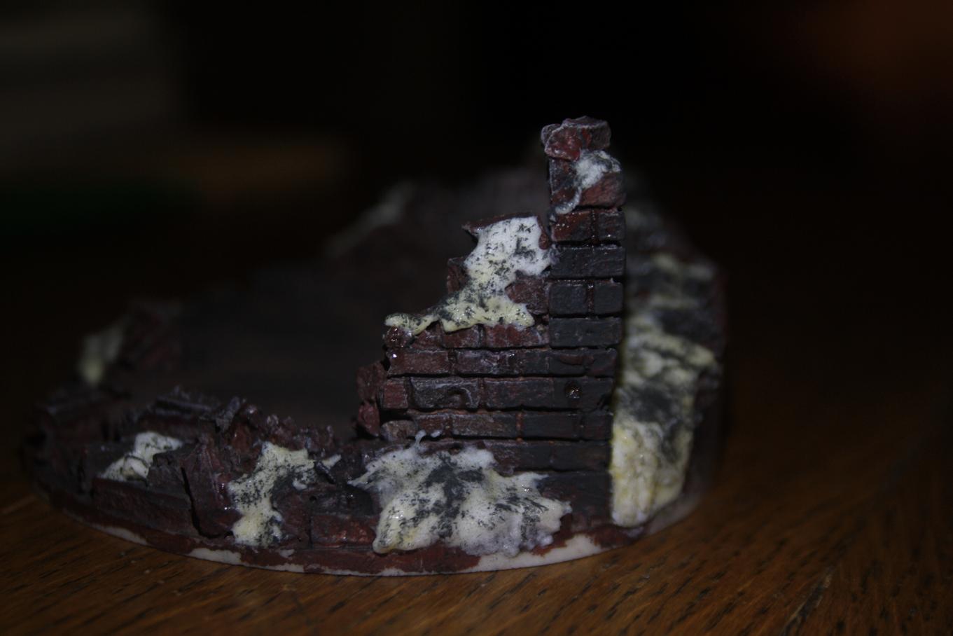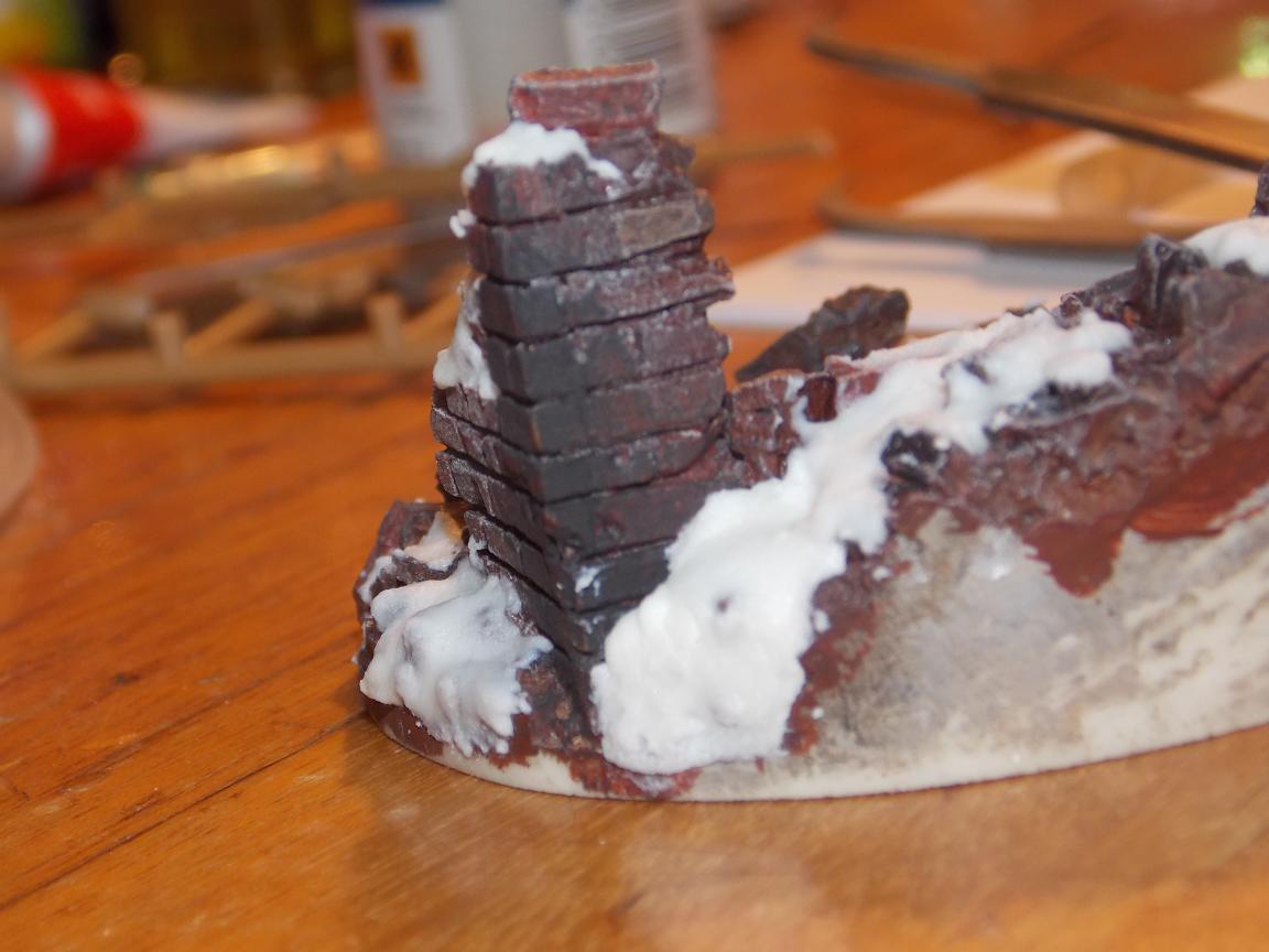 Ну раз так, тогда те участки вообще можно было бы и не красить. Смолу снегом присыпать, и всё. А в дальнейшем предлагаю фотографировать какой-нибудь кирпичик, а остальное в Фотошопе закрашивать.