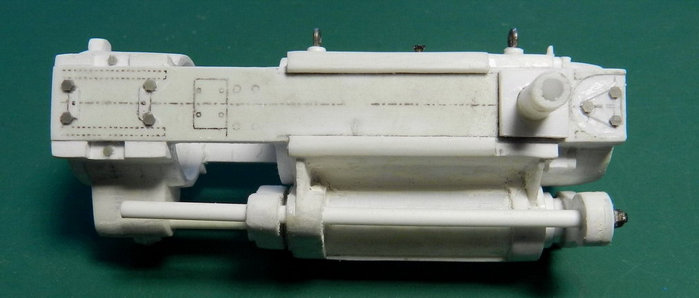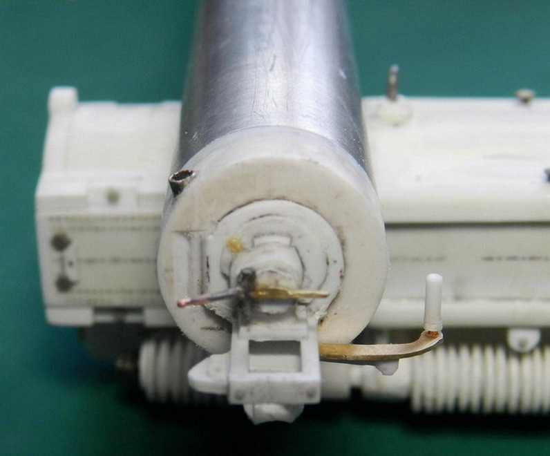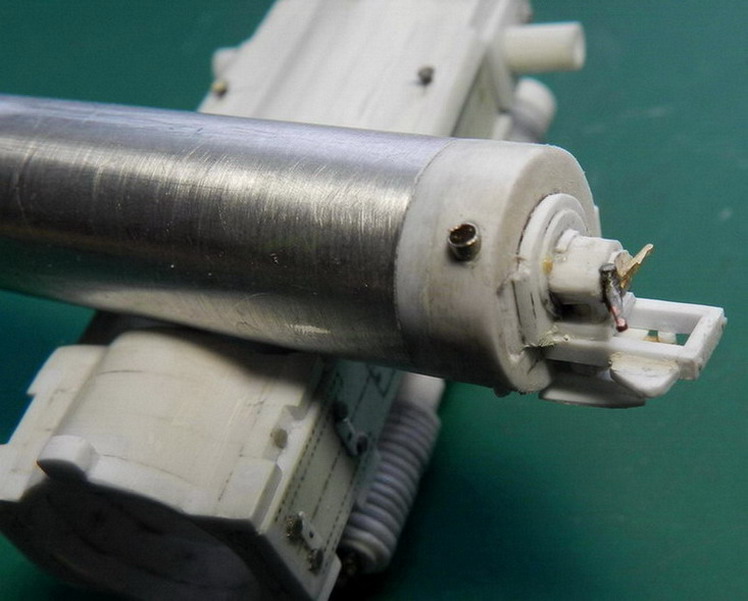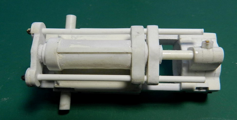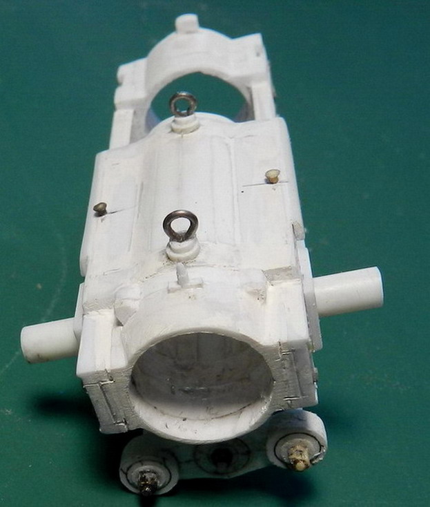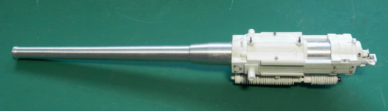 Начал как всегда со ствола. Выточил его из дюраля. Казённую часть сделал из полистирола, чтобы в дальнейшем было удобнее собирать затвор. Станок с тормозом отката и накатниками склеил из отдельных деталей и прошпаклевал.