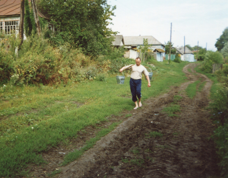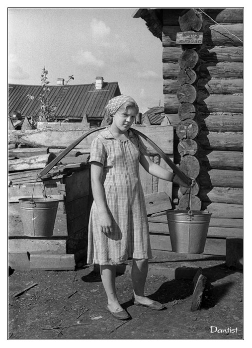 А на коромысле менее выгнутом воду несли именно на нём самом, не трогая руками вёдра.