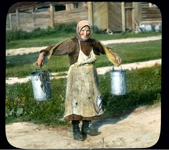 Насколько можно понять из документальных фотографий, в некоторых районах России коромысла были сильно изогнутыми. Но, в этом случае их носили совершенно по-другому - придерживая оба ведра руками.