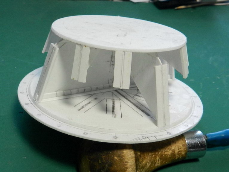 Пока выклеиваю тумбу, изготовил верхний установочный круг и сделал имитацию поворотного круга. Станок будет вращаться на 360 град.