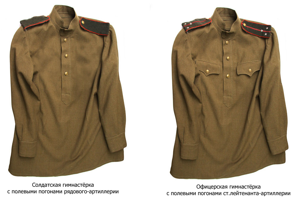Гимнастерки начальствующего состава взамен накладных карманов имеют прорезные (внутренние) карманы прикрытые клапанами.