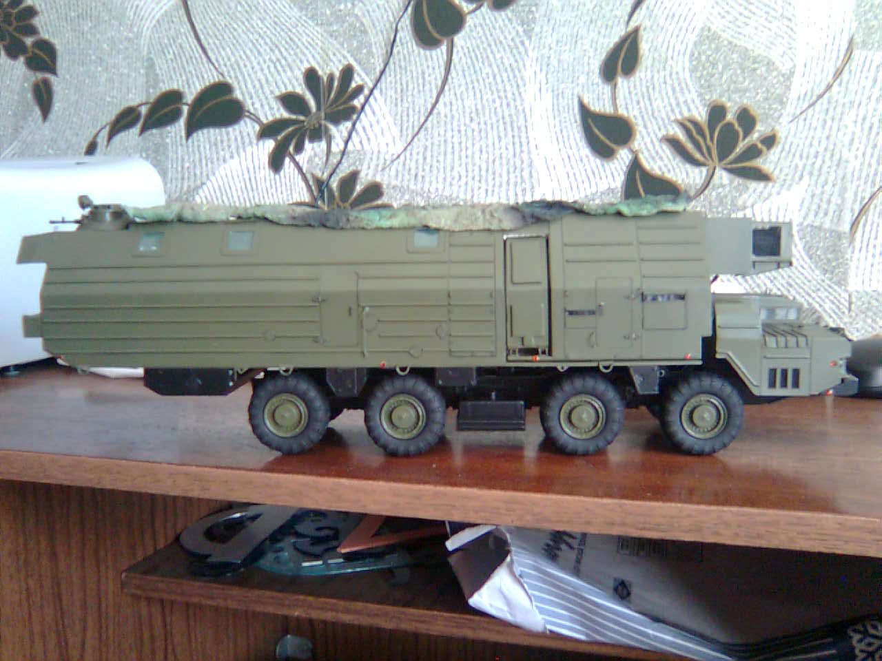 И кстати, по МОБДам, учебный у нас на военной кафедре был, на сколько я помню, однотонный зеленый, а вот в дивизии и пусковые и МОБДы и "кроны" были все камуфляжные. Причем камуфляжи были разнообразные. И, если меня память не подводит, защитный/серый/желтый и защитный/какой-то почти розовый/серо-голубой и защитный/травянисто-зеленый/коричневй(сурик?)/черный. Причем, когда я спросил офицера дивизии почему так аляповато машины раскрашены - эта ж окраска совсем не камуфлирует и что есть же стандартные схемы и краски, то он ответил что специальная краска ушла, ну... на другие цели. А когда надо было срочно перекрашивать, то взяли ту краску что была под рукой.