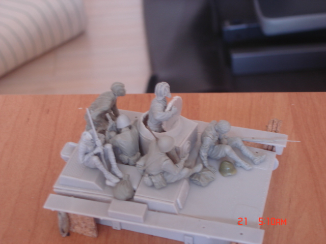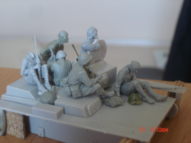Если серьезно, когда компоновал фигуры, тоже сомневался. Было даже решено садить 4 фигуры (все сидят также, только боец с винтовкой без головы отсутствует). Но ИМХО, так покрасивее.