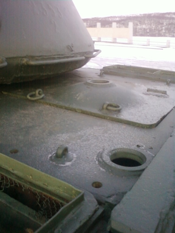 Если предположить, что танк комплектный = то широкая маска орудия на корпусе с "ломаным носом" это ни как не признак ранних машин, наоборот, не ранее лета 44-го.