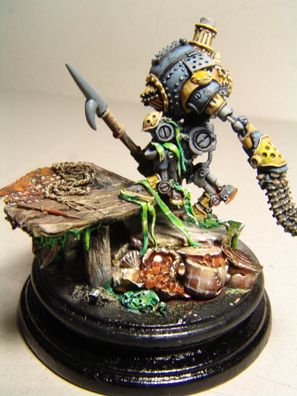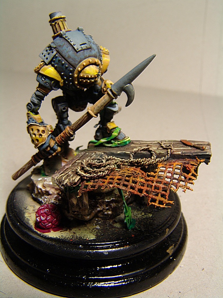 Во какую штуковину сейчас крашу.Смастерил с нуля основание, грунт слепил пирс из пластика вырезал.Фигура была статична и потому решил добавить динамики.Немного перепилил и вот ЭТО выходит из воды.Когда до крашу опишу отчет по изготовлению воды стекающей с этого водолаза.