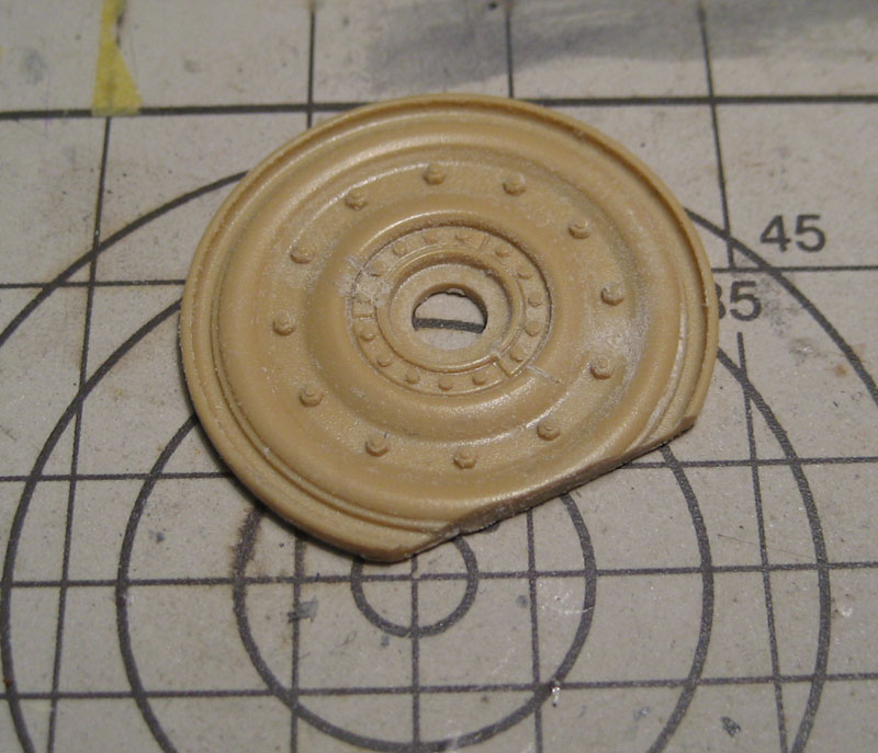 Собрал башню. Когда начал устанавливать люк, (вместо ком.башенки) обнаружилась проблема. Туварищи из СМК сделали люк как на настоящем танке, но не учли что у модели отверстие в крыше башни больше, чем у реального танка. Это отверстие имеет диаметр командирской башенки, но в реальности то оно несколько меньше, иначе комбашенке просто не на чем было бы держаться. Долго ломал голову что с этим делать. В результате решил вклеить в отверстие не нужный каток (который без бандажа). Благо, что диаметр катка практически такой же, что и у отверстия в башне. Конечно каток предварительно пришлось сильно обточить.