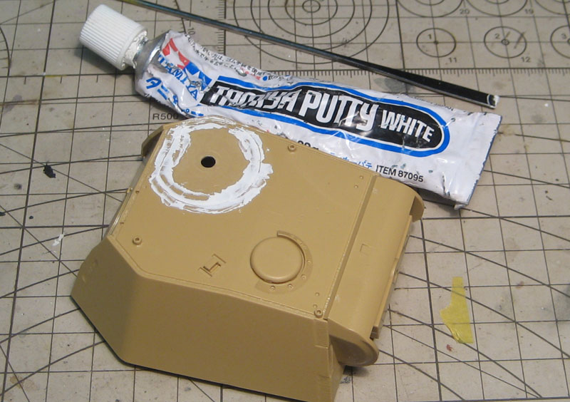 Днем замазал ненужные отверстия в бортах и шов на крыше башни.