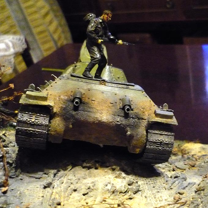 Владимир Симонов, да-да. Я согласен. Буду еще разика два по-мелочам проходить ржавчиной по "двойке", но только в нужных местах и только когда поставлю модель на диораму. Вокруг башни еще буду делать пятно выжженной травы (тоже пигментами), так что пока вопрос только в размещении моделей на основе/базе диорамы.