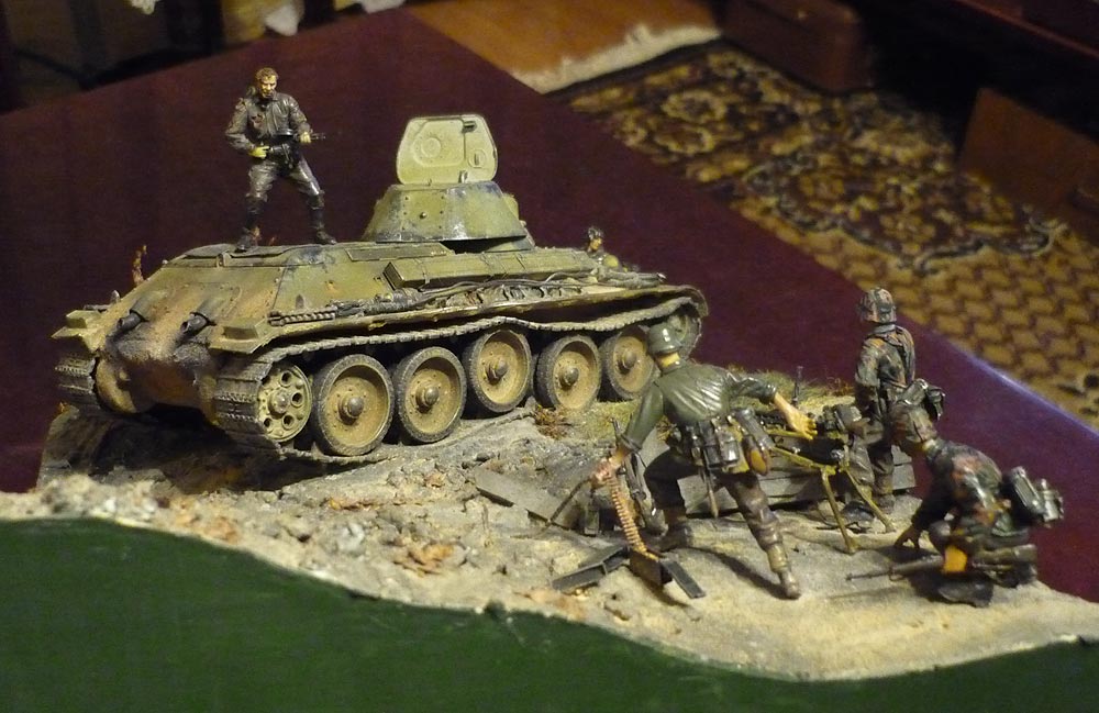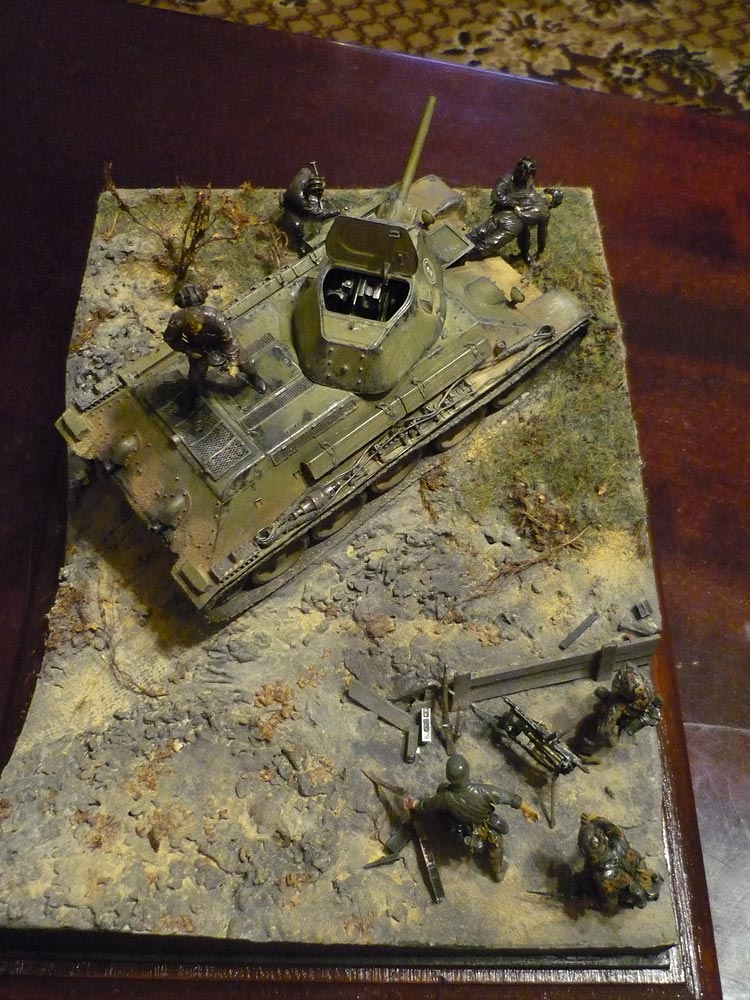 Вторая диорама будет с Т-34/76 1940 года выпуска и подбитой "двойкой". Сюжет простой: наши едут по проселку мимо подбитого врага (оригинально, не правда-ли)!