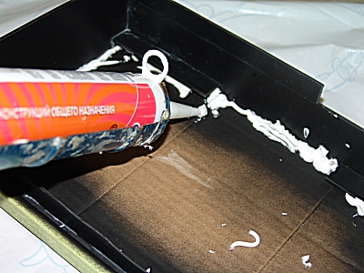 для того чтобывсе что находится подколпаком выглядило достойно,нужно приподнять диораму на пару сантиметров над багетом.Для этого делаем опалубку.Она поможет без препятственно установить стеклянныи колпак