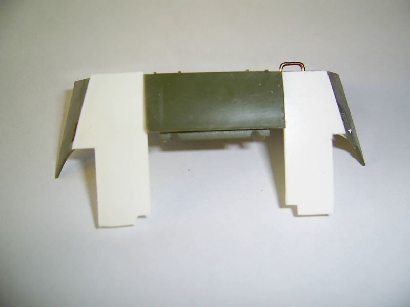 Теперь переделываем петли на крышках люков. Начнем с этого. Срезал петли и подклеил кусочки полистирола. Родные петли как-то не масштабные, проще говоря - здоровые сильно.
