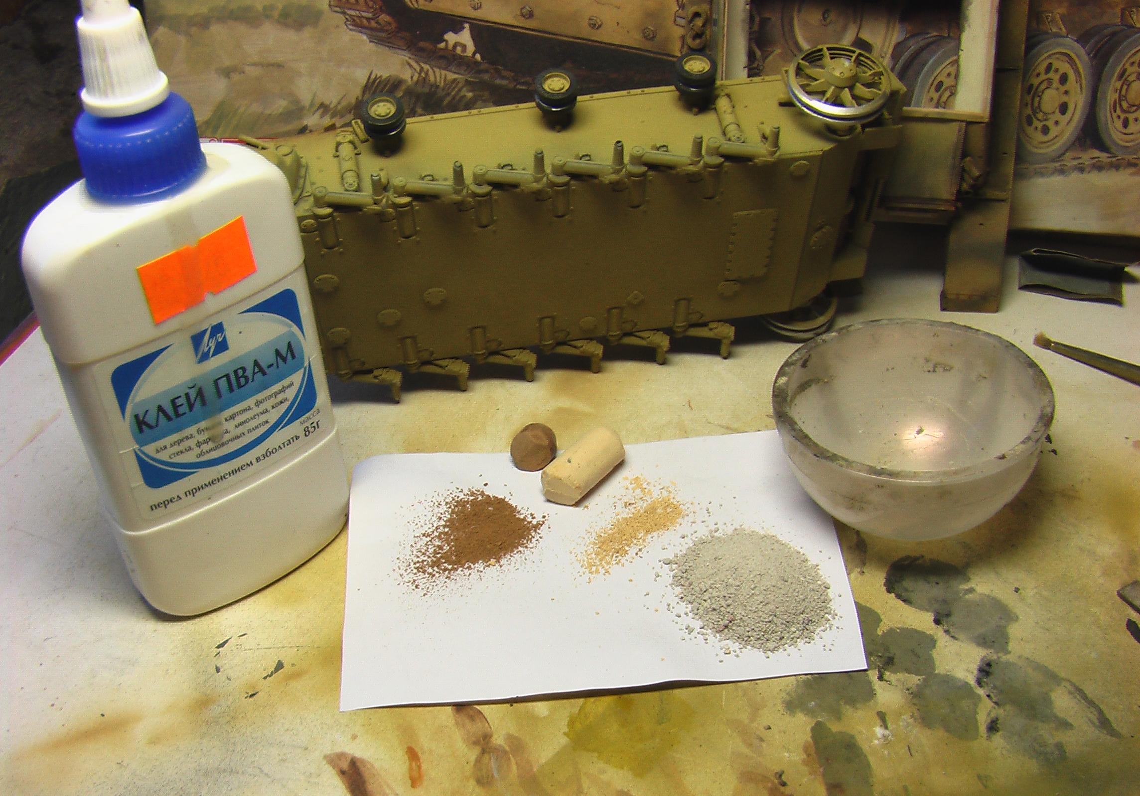 Грязь делаем из смеси ПВА,воды,тертых мелков двух видов и..молотого наполнителя для кошачьих туалетов.Ну нет у меня кота,но есть наполнитель.Надо же его куда-то использовать.Хотя тертый застывший гипс мне больше нравится.Не так усадку дает.