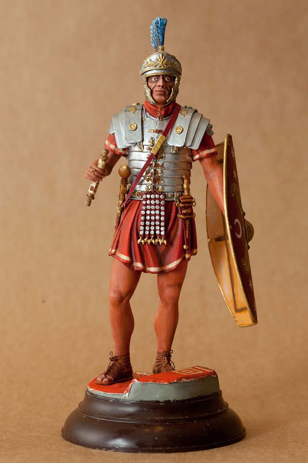 Хочется остановиться на подставке. Для меня было важно найти решение- в какой обстановке находится мой преторианец. Во-первых Миниартовская подставка весьма ограничена по площади, во-вторых её аскетичность всегда вызывало во мне душевный дискомфорт. И из этого следует третье - погружение миниатюры в свою среду, лишь усилит визуальное восприятие. То же самое как театральные декорации позволяют увеличить вовлечение зрителя в действо спектакля.