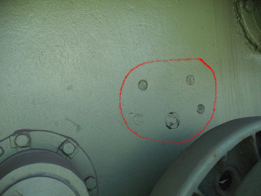 Вопрос в том, что либо я неправильно выразил свою мысль, либо Вы меня не правильно поняли. Попробую по другому, на рисунке я схематично изобразил, то самое конусовидное крепление поддерживающего ролика, вид: фас. Так вот в той части что выделена красным цветом были ли какие либо технологические отвертия в боротовой броне танка?? (хотя все больше начинаю убеждаться, что ничего там не было, но хочу убедиться на 100%)