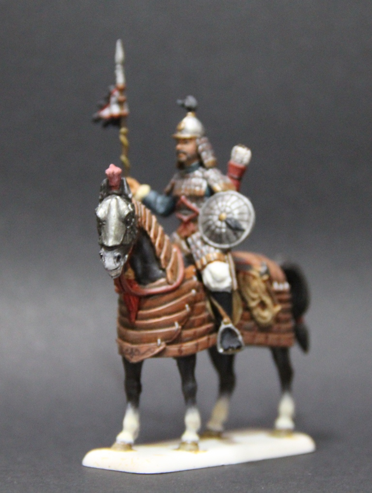 честно говоря еще хотелось, чтобы его ламеллярный доспех не был в схожей цветовой гамме с кольчугой, тогда бы это сделало фигурку очень скучной.