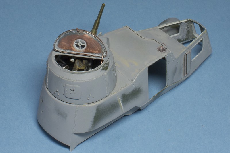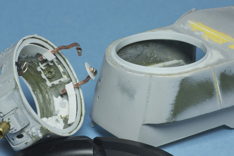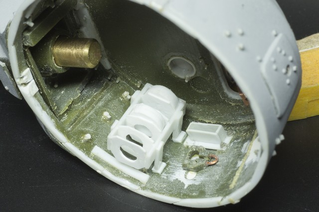 Во первых, решился исправить погон башни. У Звезды он заужен на 6 мм по диаметру и внутренности выглядят не так как хотелось бы. Например практически не видно веерную укладку, а ведь я старался