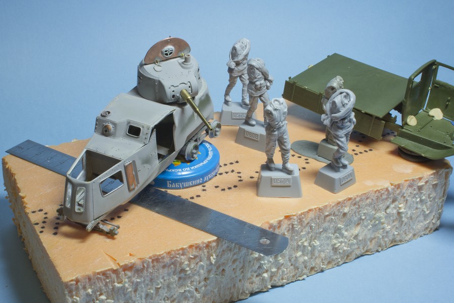 Всем доброго времени суток! С лета пилю БА-10М от "Звезды", который планируется как один из участников диорамы на 41 год. В компанию к нему также планируется ГАЗ-АА с турелью счетверенных "Максимов" и фигурки от Танка. Обе машины будут пострадавшими от авианалета, а бронеавтомобиль - сгоревшим.